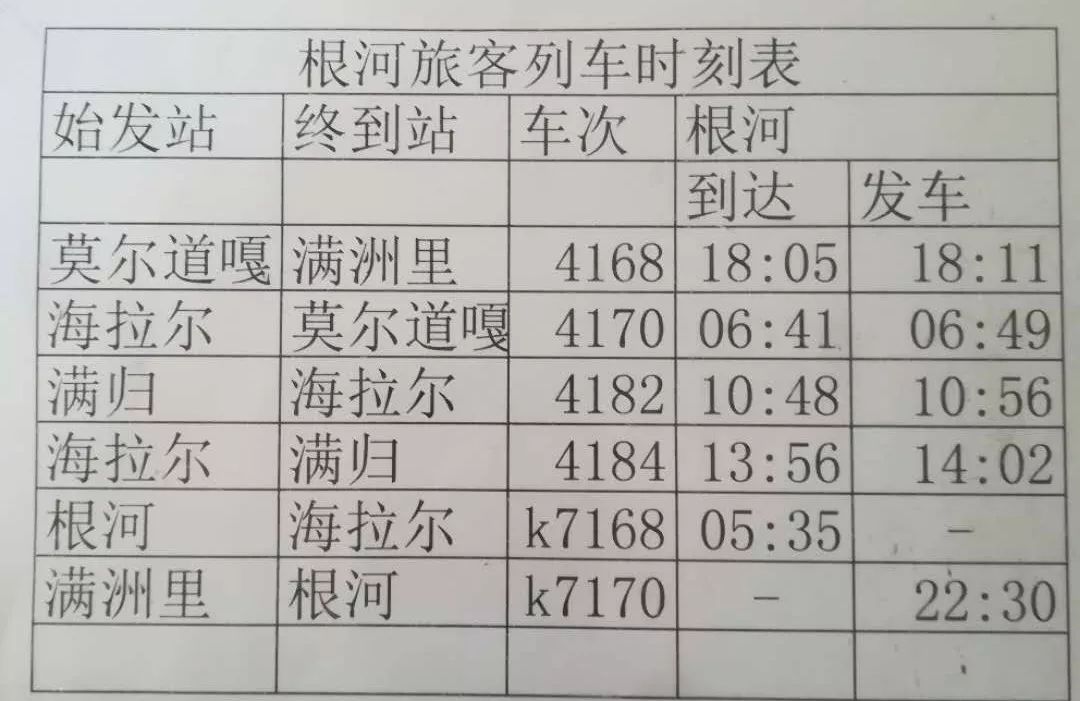 二、訥河列車時刻表更新