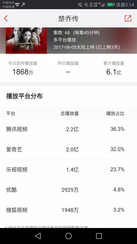 獲取《楚喬傳》最新點擊率信息