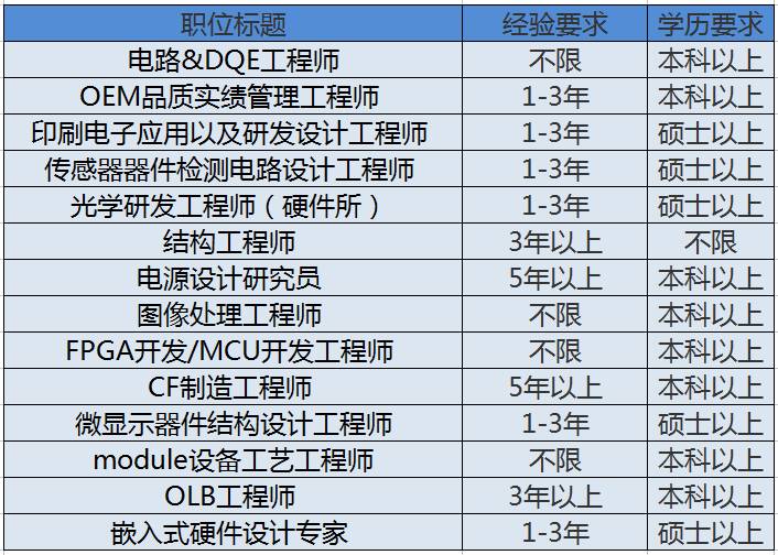 1、研發(fā)工程師:加入我們,共同研發(fā)新一代顯示技術(shù),挑戰(zhàn)技術(shù)極限。