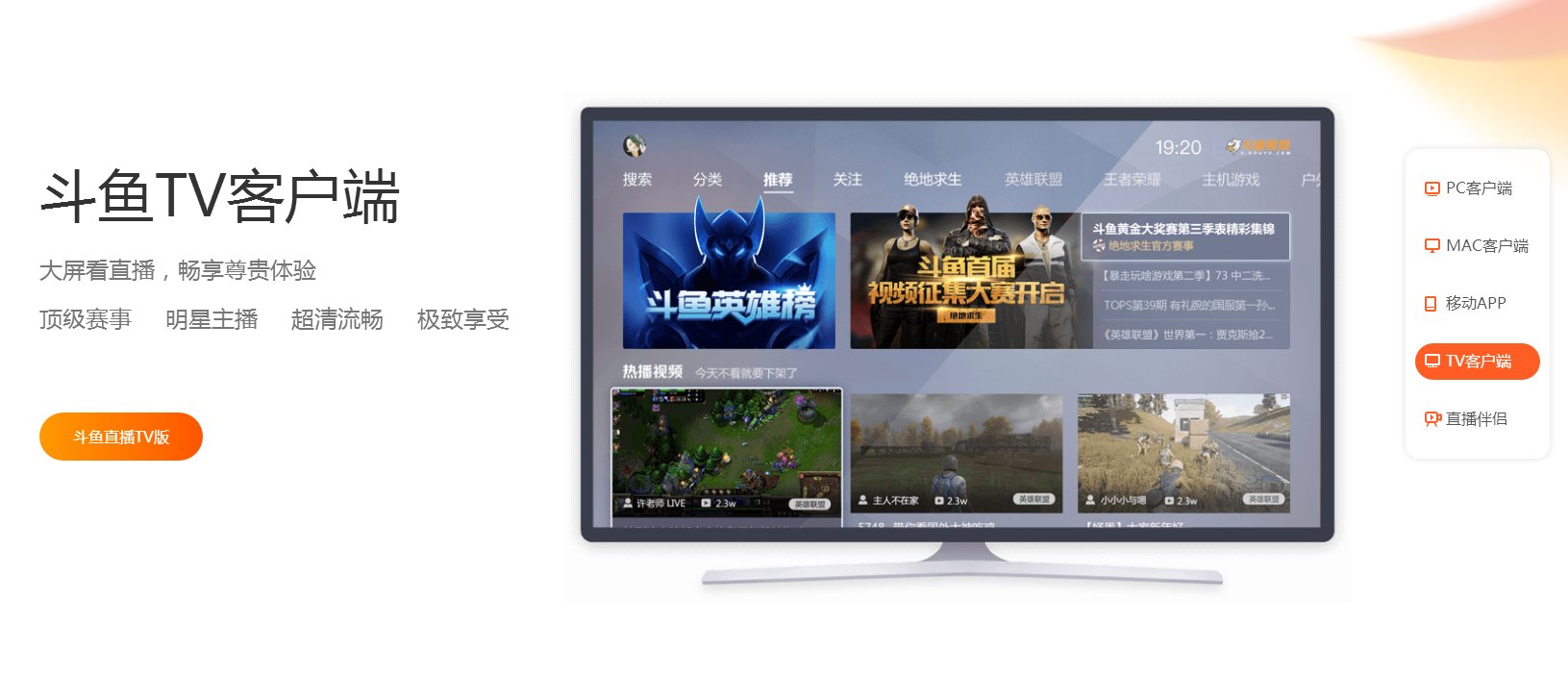在電視上看斗魚直播的方法部分